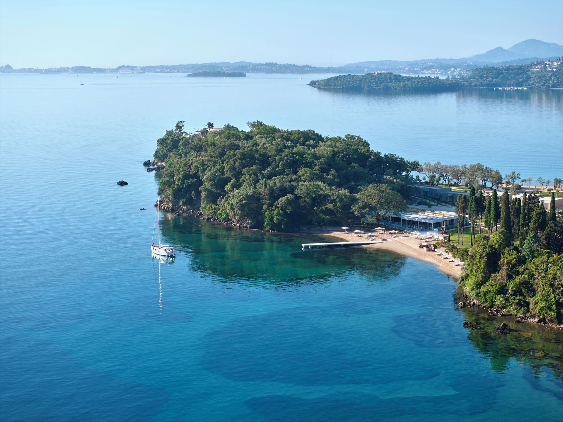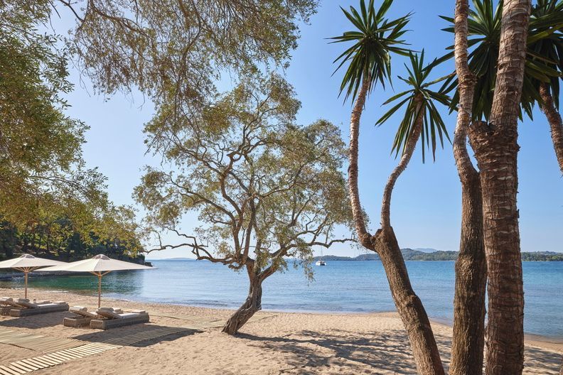 Nestled on the island’s serene northwest coast, the resort is surrounded by lush greenery, clear blue waters, and expansive olive groves, providing a tranquil and picturesque backdrop. The accommodations at Ikos Odisia are designed with sophisticated elegance, featuring spacious rooms, suites, and villas, many of which offer private terraces or balconies with spectacular views of the Ionian Sea or the resort’s beautiful gardens. With modern amenities and attention to detail, the resort ensures guests enjoy a comfortable and luxurious stay in this enchanting Greek setting.